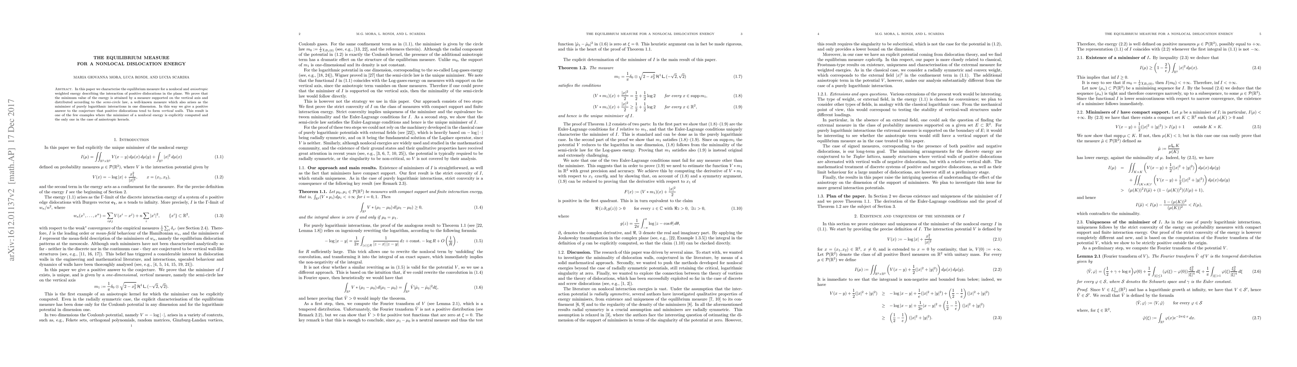 In this paper we characterise the equilibrium measure for a nonlocal and anisotropic weighted energy describing the interaction of positive dislocations in the plane. We prove that the minimum value of the energy is attained by a measure supported on the vertical axis and distributed according to the semi-circle law, a well-known measure which also arises as the minimiser of purely logarithmic interactions in one dimension. In this way we give a positive answer to the conjecture that positive dislocations tend to form vertical walls. This result is one of the few examples where the minimiser of a nonlocal energy is explicitly computed and the only one in the case of anisotropic kernels.