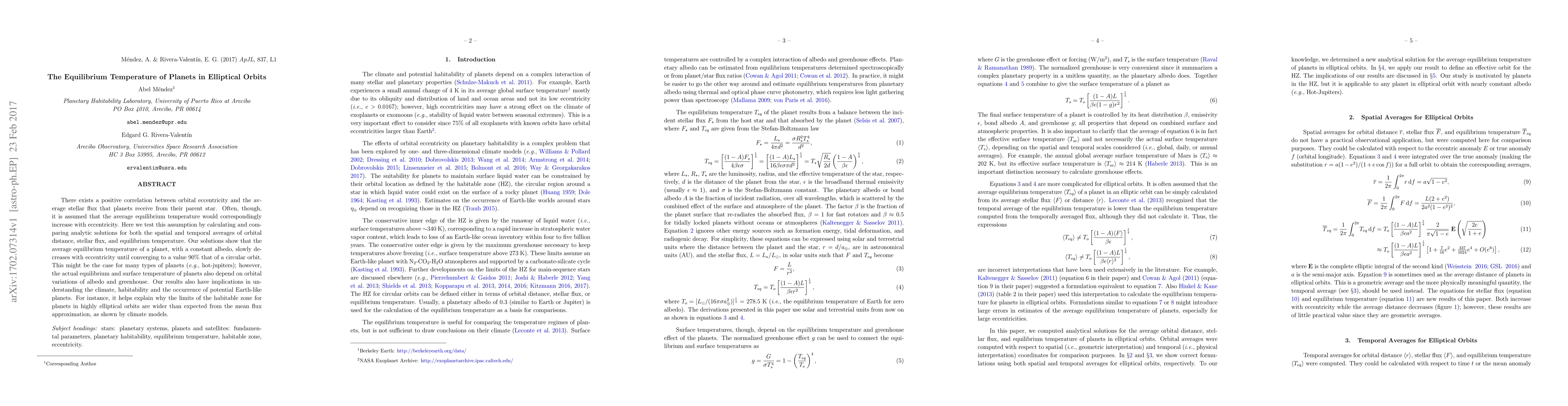 This paper investigates the relationship between orbital eccentricity and equilibrium temperature for planets in elliptical orbits, finding that average equilibrium temperature decreases with eccentricity, contrary to common assumptions. The study highlights the implications for climate, habitability, and the broader understanding of Earth-like planets in such orbits.