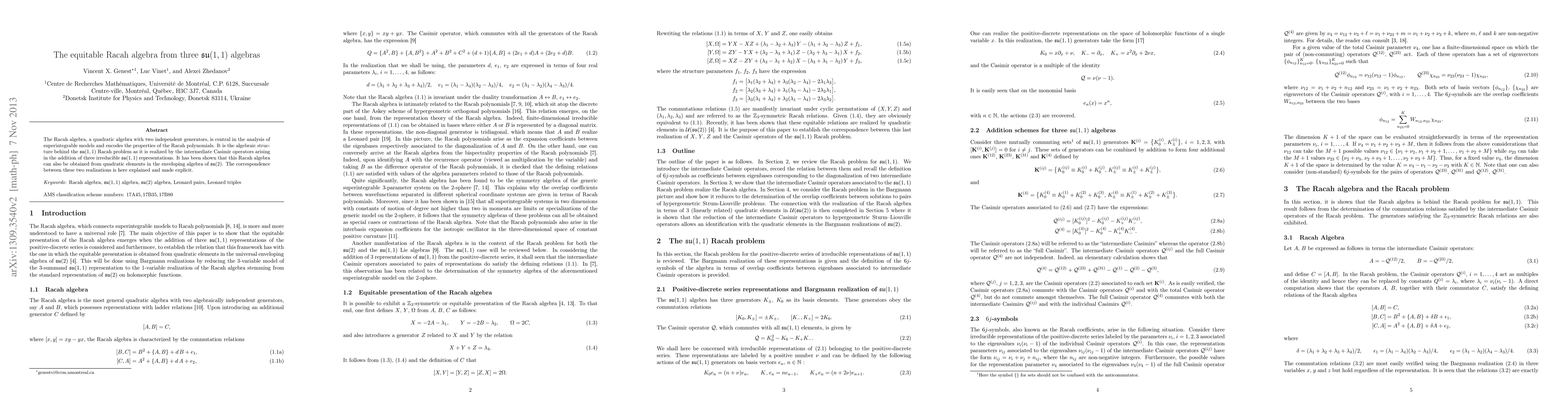 This paper explores the Racah algebra, which underpins superintegrable models and the properties of Racah polynomials, and demonstrates its derivation from three su(1,1) algebras. It elucidates the correspondence between this algebraic structure and its realization via quadratic elements in the su(2) enveloping algebra.
