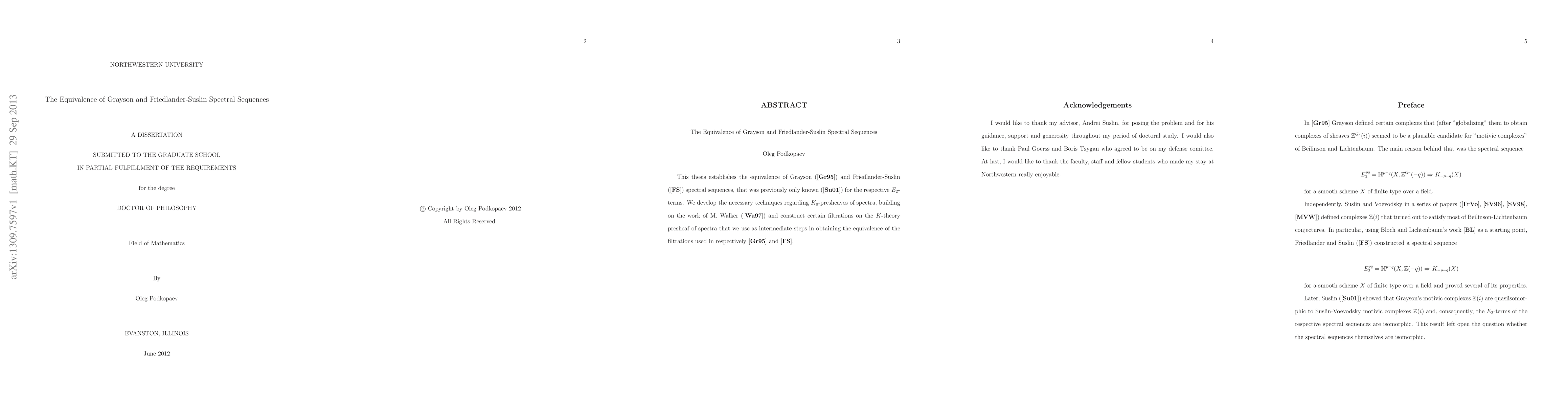 This paper proves the equivalence of Grayson and Friedlander-Suslin spectral sequences, extending previous results that only covered their E_2-terms. The author develops new techniques involving K_0-presheaves of spectra and constructs filtrations to achieve this equivalence.