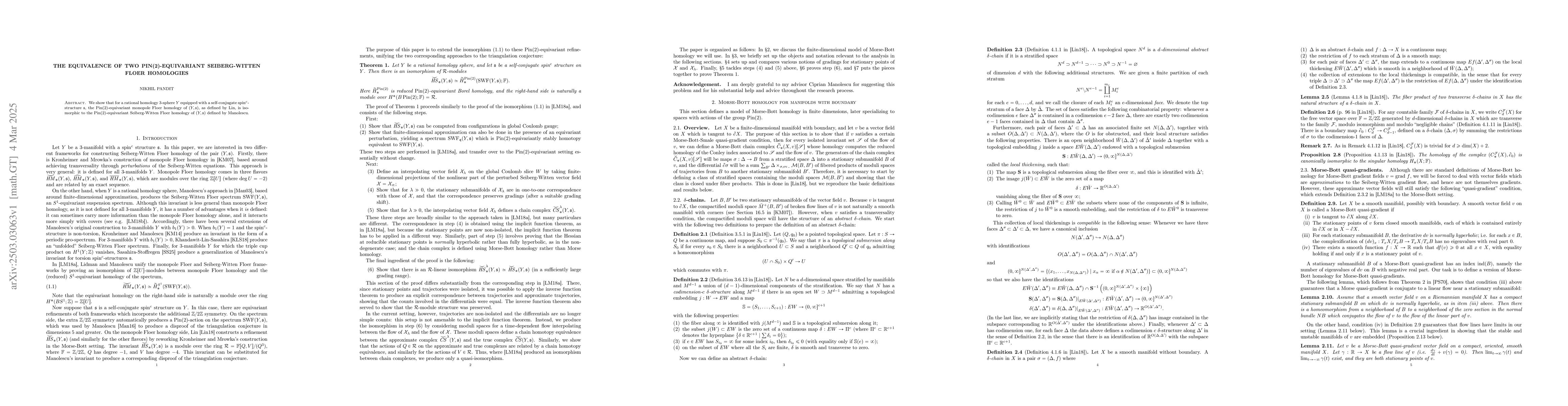 The paper introduces a detailed comparison of Pin(2)-equivariant monopole and Seiberg-Witten Floer homologies, providing a rigorous proof of their isomorphism for specified conditions.