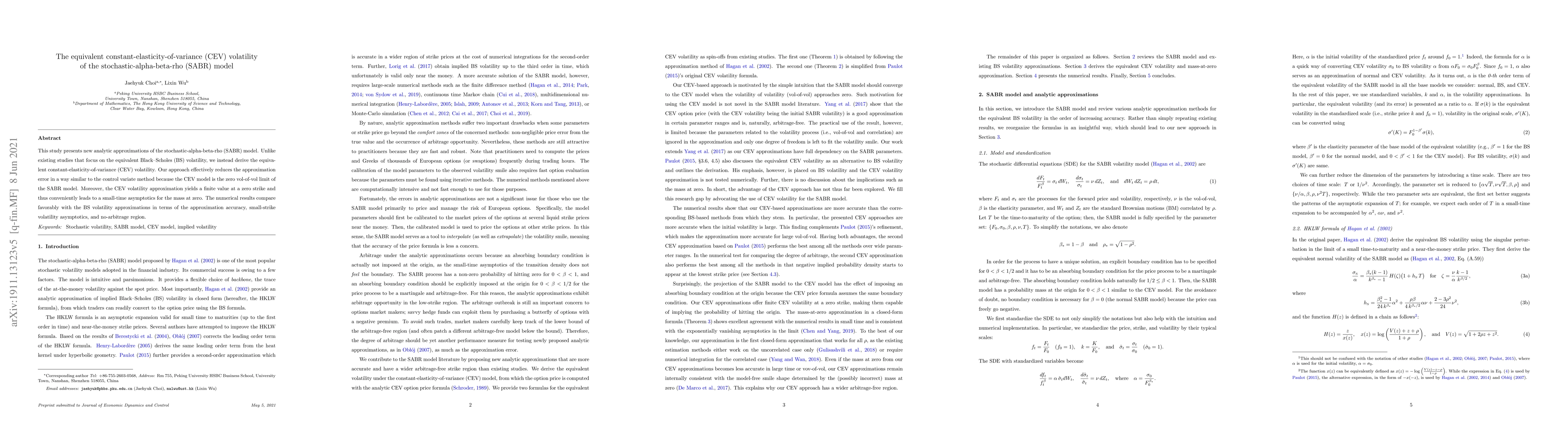 This research introduces new analytic approximations for the SABR model, focusing on equivalent Constant-Elasticity-of-Variance (CEV) volatility instead of Black-Scholes (BS) volatility. The method reduces approximation errors and provides a finite value at zero strike, enhancing small-time asymptotics and comparison with BS volatility approximations in terms of accuracy and no-arbitrage regions.