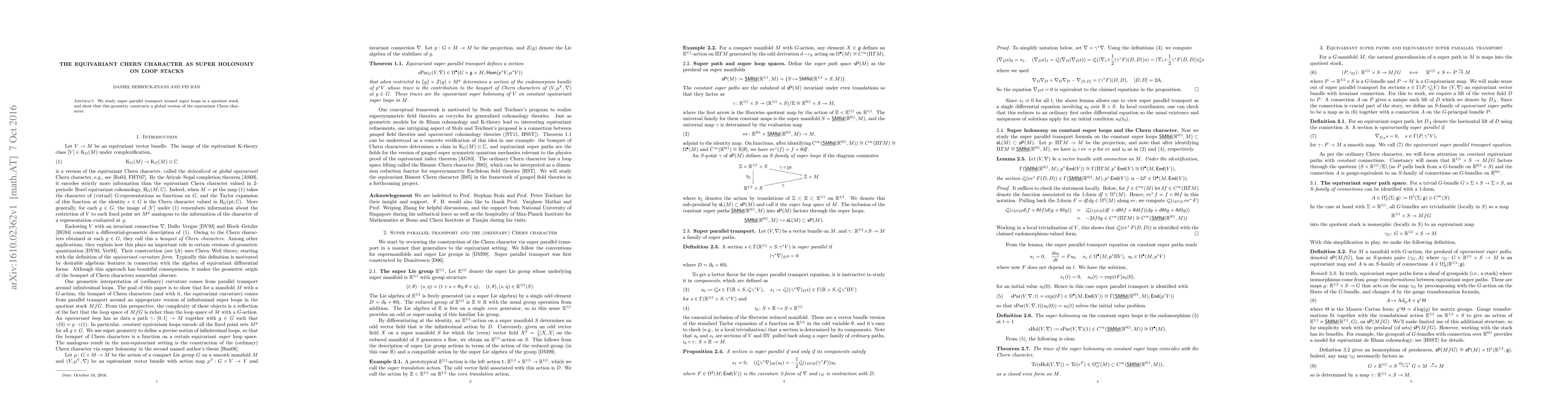 We study super parallel transport around super loops in a quotient stack, and show that this geometry constructs a global version of the equivariant Chern character.
