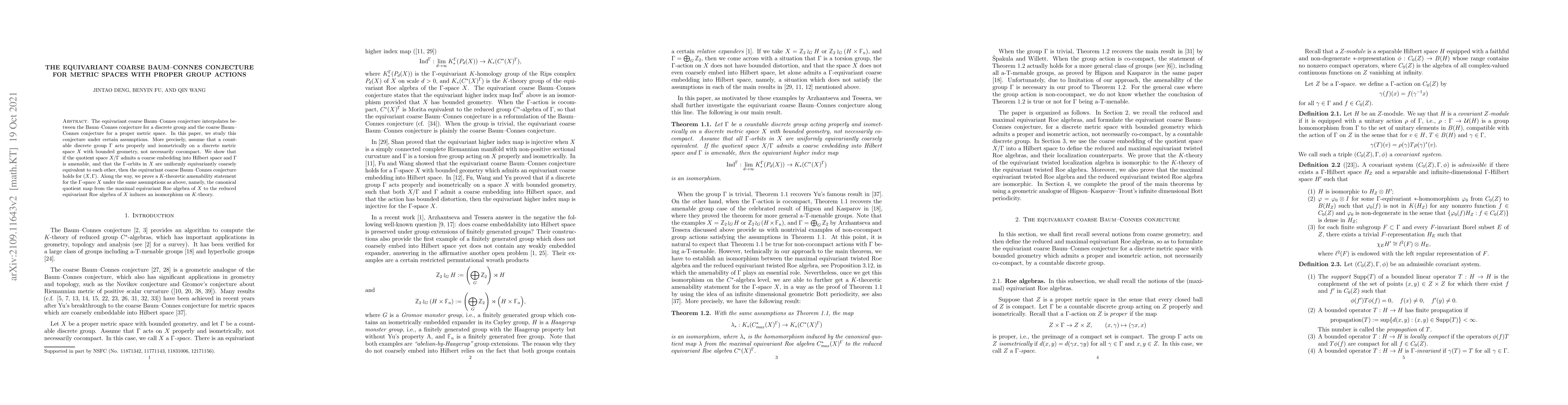 This paper investigates the equivariant coarse Baum-Connes conjecture for metric spaces with proper group actions, proving it under conditions where the group is amenable and the quotient space embeds into Hilbert space. It also establishes a $K$-theoretic amenability statement for the involved spaces.