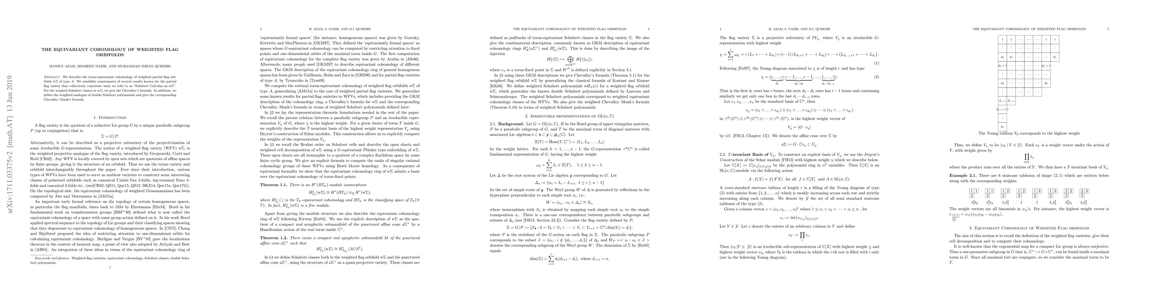 This paper explores the torus-equivariant cohomology of weighted partial flag orbifolds of type $A$, presenting results analogous to Schubert calculus and introducing weighted double Schubert polynomials with their respective Chevalley-Monk's formula.