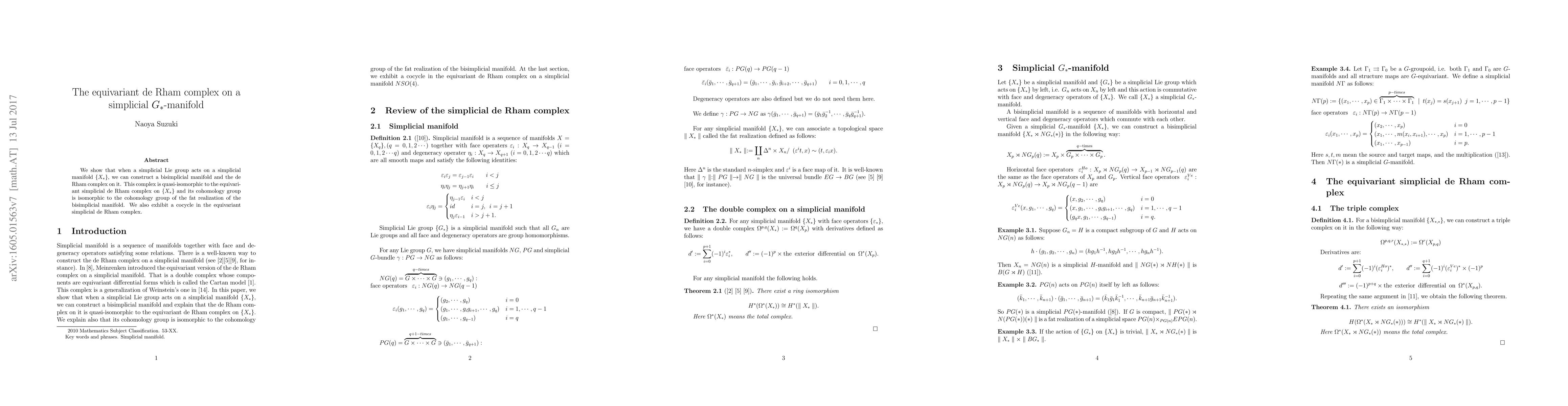 The paper constructs a bisimplicial manifold from a simplicial G_*-manifold and its simplicial Lie group action, then establishes a quasi-isomorphism between the equivariant simplicial de Rham complex and the de Rham complex on the bisimplicial manifold.
