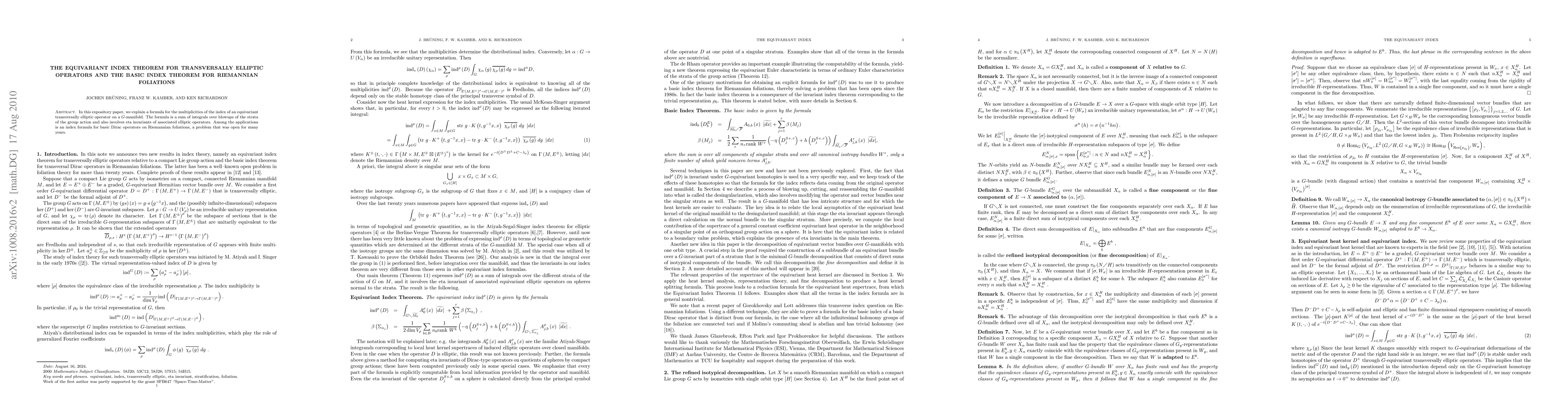 In this expository paper, we explain a formula for the multiplicities of the index of an equivariant transversally elliptic operator on a $G$-manifold. The formula is a sum of integrals over blowups of the strata of the group action and also involves eta invariants of associated elliptic operators. Among the applications is an index formula for basic Dirac operators on Riemannian foliations, a problem that was open for many years. This paper summarizes the work in the papers arXiv:1005.3845 [math.DG] and arXiv:1008.1757 [math.DG].