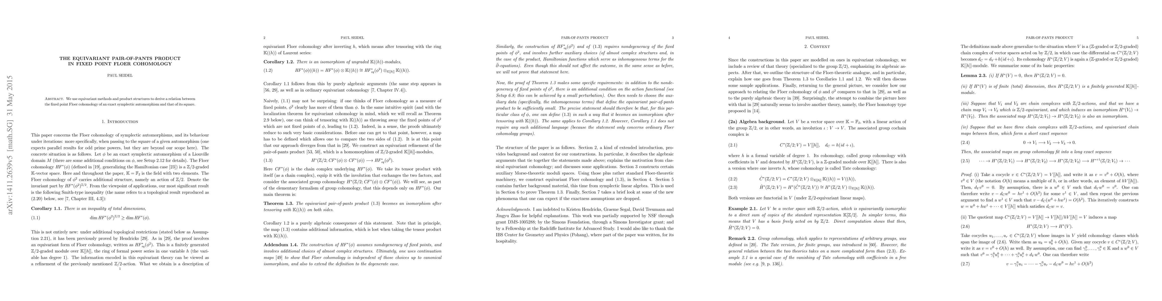 The Floer cohomology of a symplectic automorphism and that of its square are related by the pair-of-pants product. For exact symplectic automorphisms, we introduce an equivariant version of that product, and use it to prove a Smith-type inequality of ranks between Floer cohomology groups. Under additional topological assumptions, the same inequality was previously proved by Hendricks, using a different strategy.