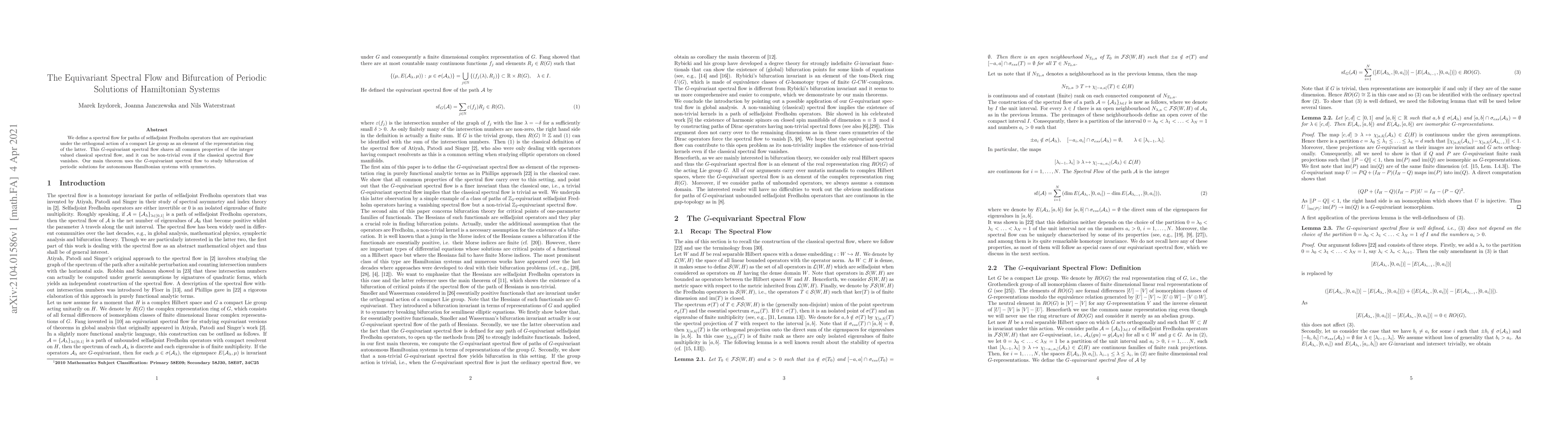 This paper introduces a $G$-equivariant spectral flow for equivariant paths of selfadjoint Fredholm operators, demonstrating its properties and applications. It uses this flow to analyze the bifurcation of periodic solutions in Hamiltonian systems with symmetries.