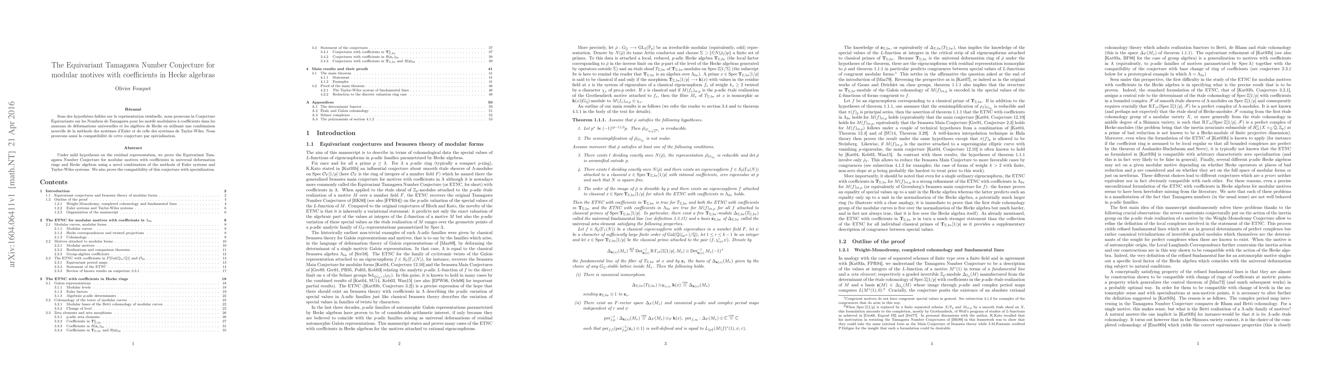Summary: The paper proves the Equivariant Tamagawa Number Conjecture for modular motives with Hecke algebra coefficients using Euler and Taylor-Wiles systems, and demonstrates compatibility with specialization under mild hypotheses.
