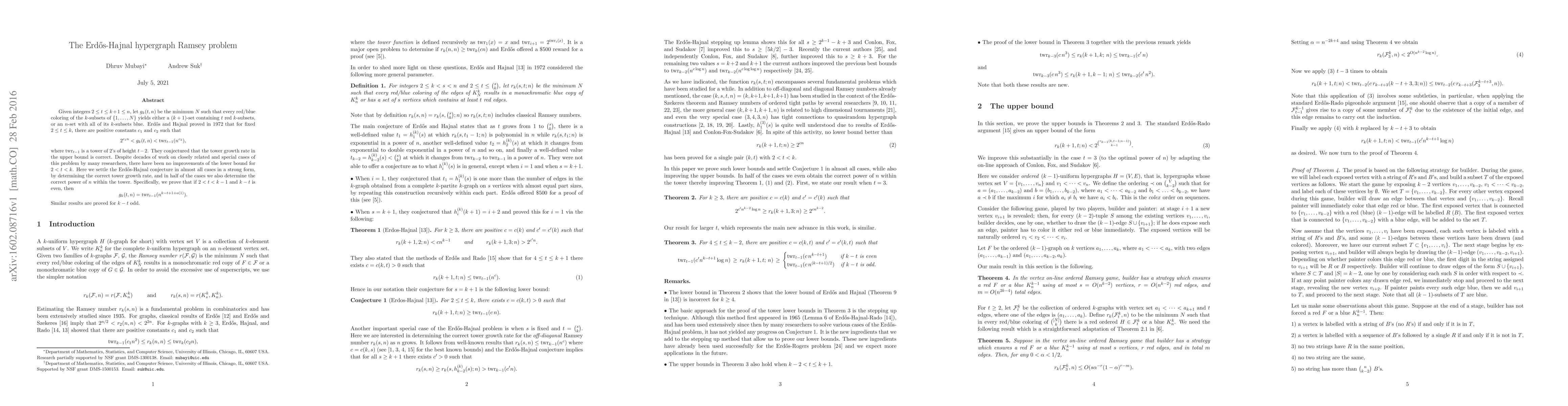 its $k$-subsets blue. Erd\H{o}s and Hajnal proved in 1972 that for fixed $2\le