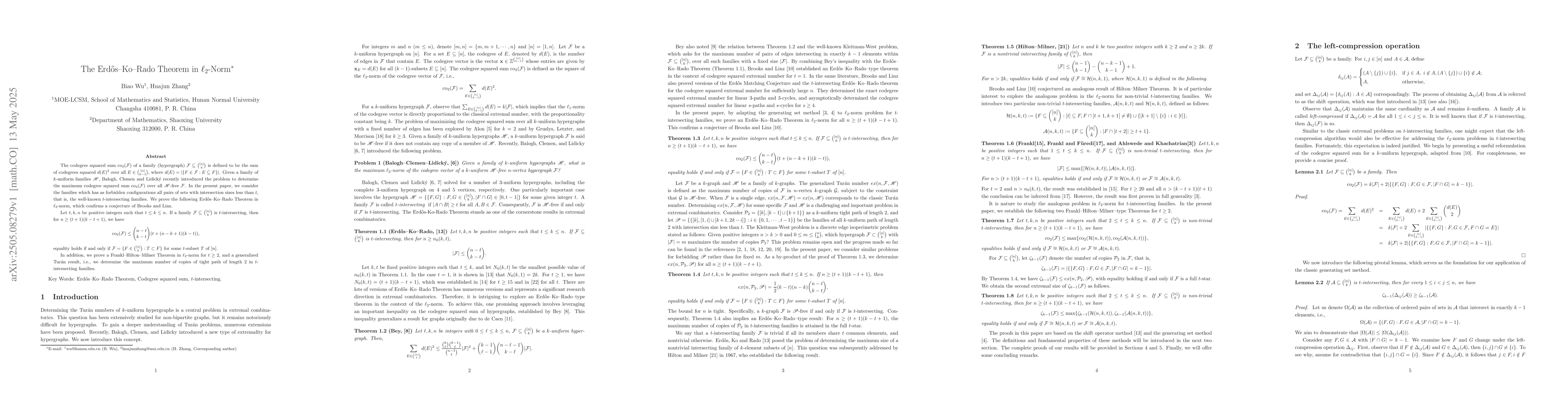The paper establishes new bounds and theorems concerning the codegree squared sum in the context of $t$-intersecting families, extending classical results to the $\ell_2$-norm setting.