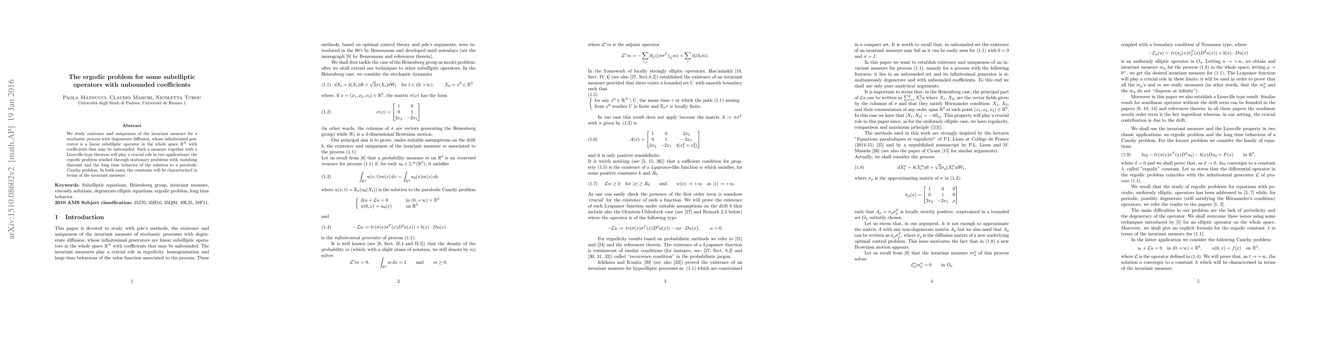 This research paper studies the existence and uniqueness of an invariant measure for a stochastic process with degenerate diffusion, extending previous results to unbounded coefficients.