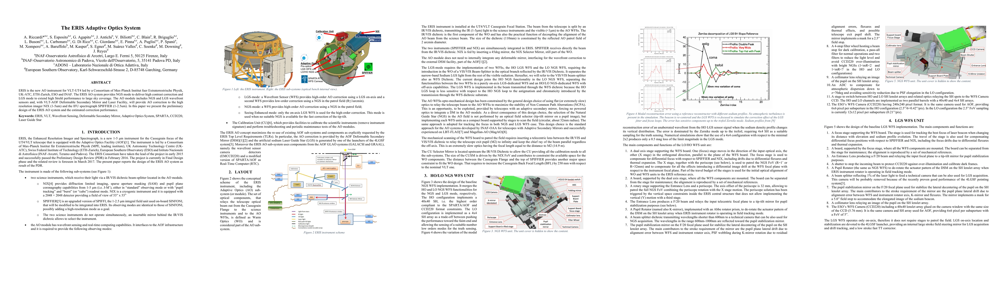 ERIS is the new AO instrument for VLT-UT4 led by a Consortium of Max-Planck Institut fuer Extraterrestrische Physik, UK-ATC, ETH-Zurich, ESO and INAF. The ERIS AO system provides NGS mode to deliver high contrast correction and LGS mode to extend high Strehl performance to large sky coverage. The AO module includes NGS and LGS wavefront sensors and, with VLT-AOF Deformable Secondary Mirror and Laser Facility, will provide AO correction to the high resolution imager NIX (1-5um) and the IFU spectrograph SPIFFIER (1-2.5um). In this paper we present the preliminary design of the ERIS AO system and the estimated correction performance.