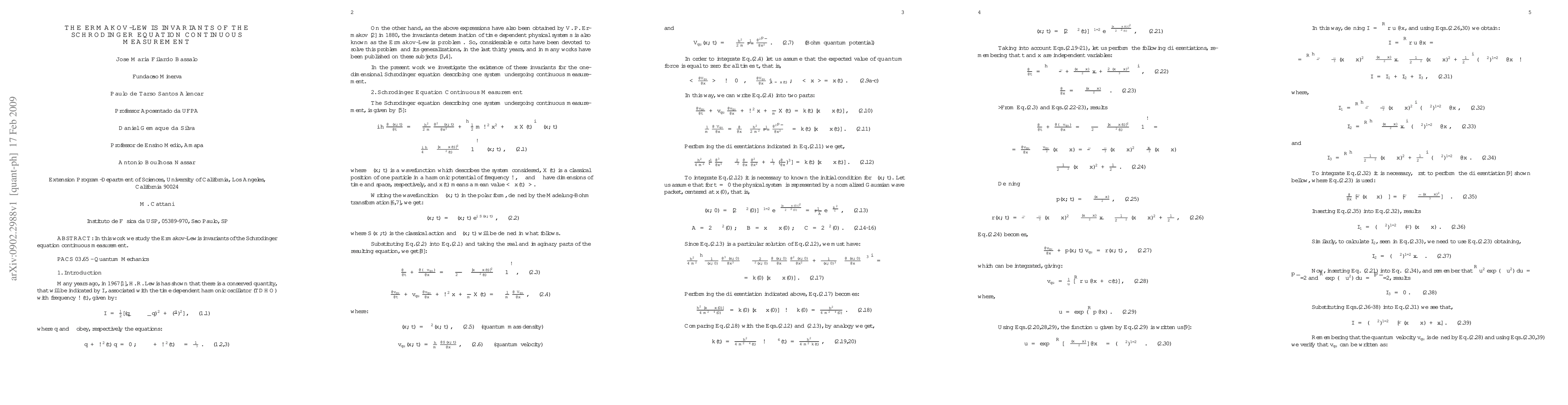 In this work we study the Ermakov-Lewis invariants of the Schrodinger equation continuous measurement.