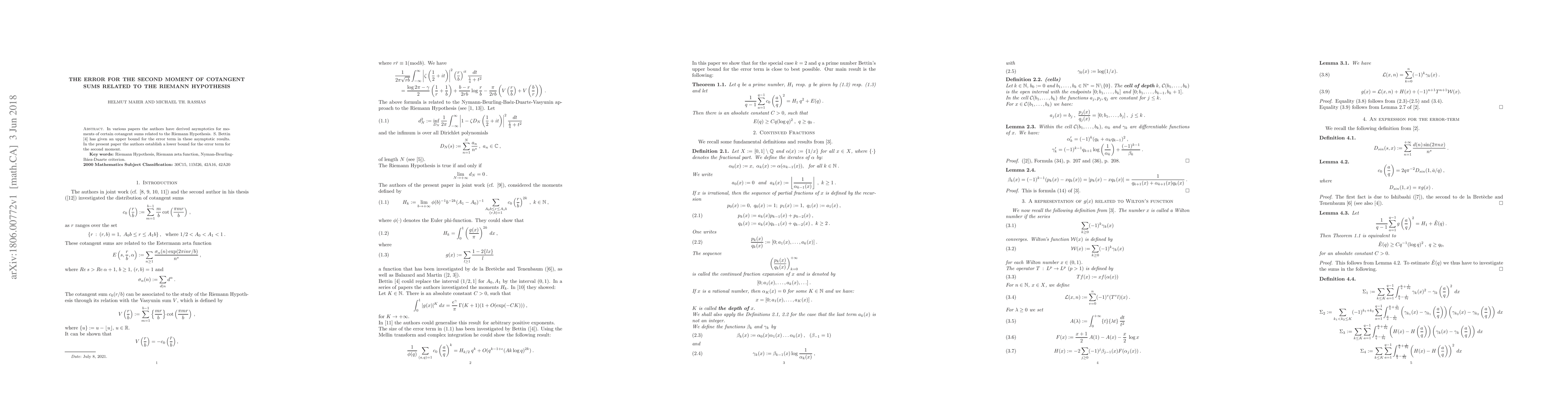In various papers the authors have derived asymptotics for moments of certain cotangent sums related to the Riemann Hypothesis. S. Bettin has given an upper bound for the error term in these asymptotic results. In the present paper the authors establish a lower bound for the error term for the second moment.