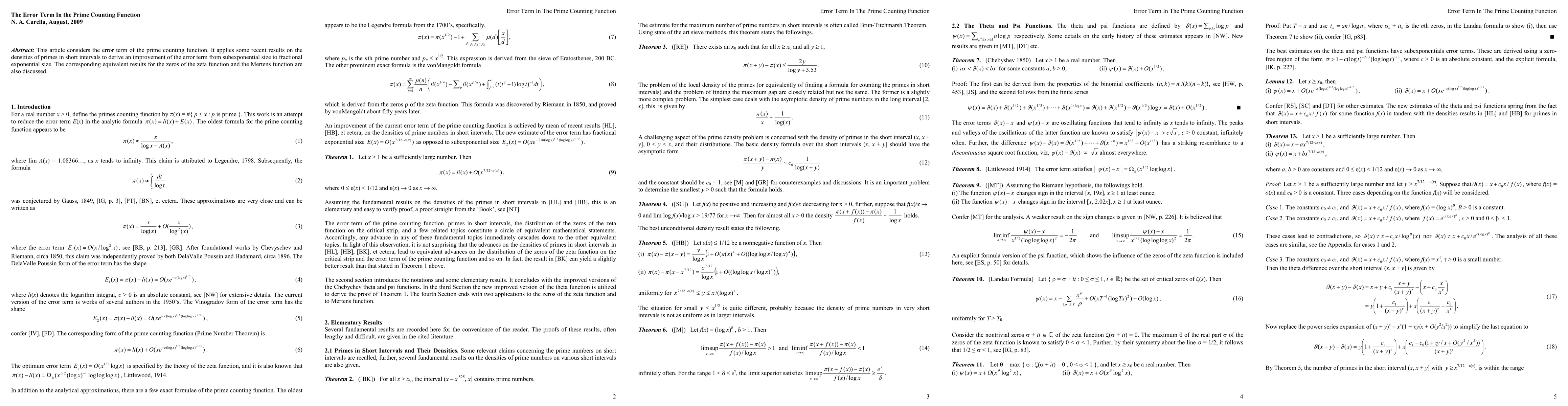 This article considers the error term of the primes counting function. It applies some recent results on the densities of prime numbers in short intervals to derive an improvement of the error term from subexponential size to fractional exponential size. The corresponding equivalent results for the zeros of the zeta function and Mertens conjecture are also discussed.