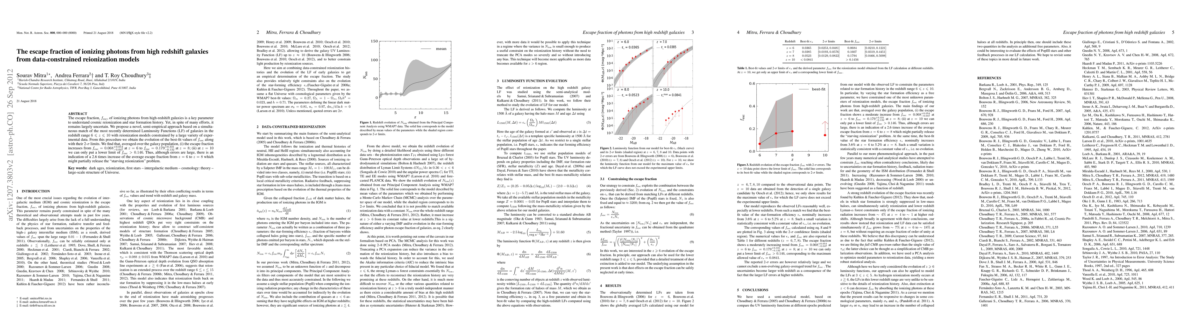 The escape fraction, f_{esc}, of ionizing photons from high-redshift galaxies is a key parameter to understand cosmic reionization and star formation history. Yet, in spite of many efforts, it remains largely uncertain. We propose a novel, semi-empirical approach based on a simultaneous match of the most recently determined Luminosity Functions (LF) of galaxies in the redshift range 6 \leq z \leq 10 with reionization models constrained by a large variety of experimental data. From this procedure we obtain the evolution of the best-fit values of f_{esc} along with their 2-sigma limits. We find that, averaged over the galaxy population, (i) the escape fraction increases from f_{esc} = 0.068_{-0.047}^{+0.054} at z=6 to f_{esc} = 0.179_{-0.132}^{+0.331} at z=8; (ii) at z=10 we can only put a lower limit of f_{esc} > 0.146. Thus, although errors are large, there is an indication of a 2.6 times increase of the average escape fraction from z=6 to z=8 which might partially release the "starving reionization" problem.