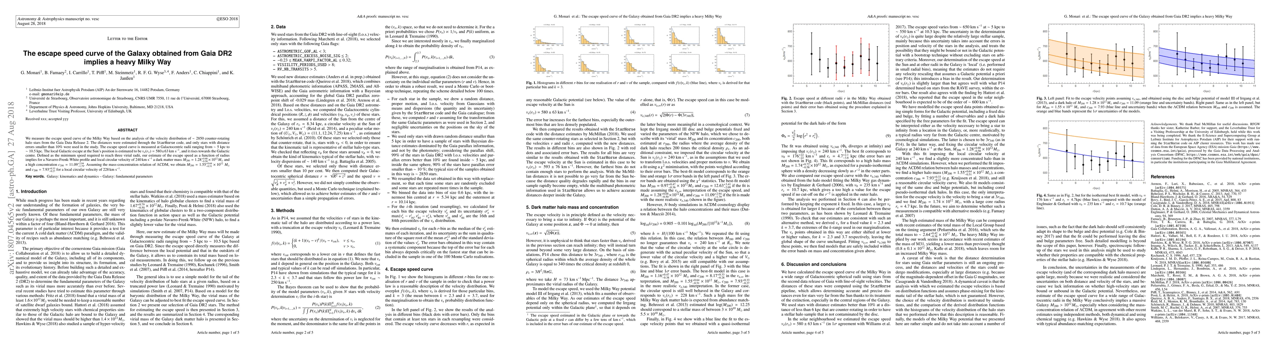 The escape speed curve of the Milky Way suggests a heavy galaxy with a dark matter mass of 1.28 to 1.55 x 10^12 solar masses and high concentration, implying a heavy Milky Way.