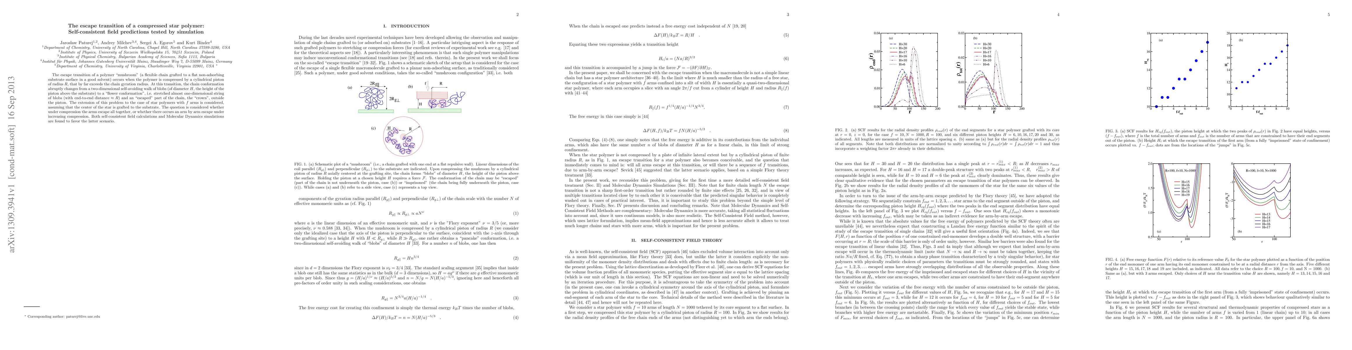 This paper investigates the escape transition of compressed star polymers, finding that under increasing compression, polymer arms escape incrementally rather than all together. Self-consistent field calculations and Molecular Dynamics simulations both support this gradual arm-by-arm escape behavior.
