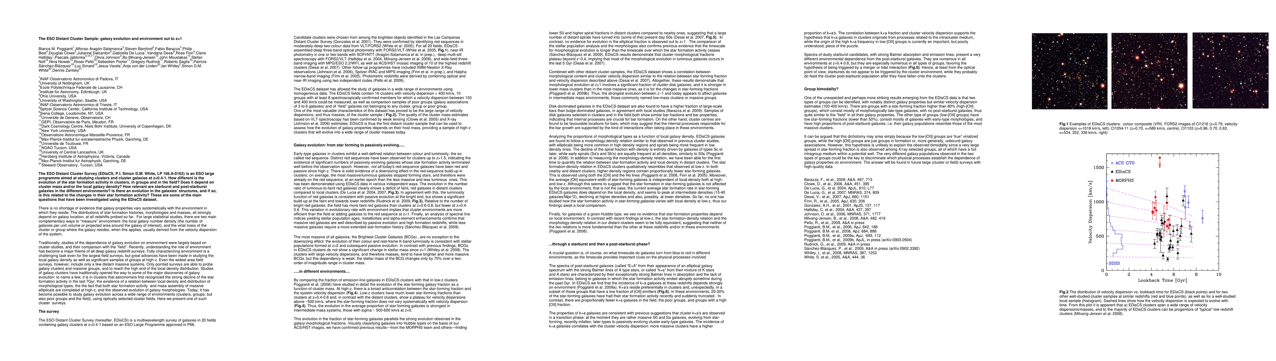 The ESO Distant Cluster Survey (EDisCS, P.I. Simon D.M. White, LP 166.A-0162) is an ESO large programme aimed at studying clusters and cluster galaxies at z=0.4-1. How different is the evolution of the star formation activity in clusters, in groups and in the field? Does it depend on cluster mass and/or the local galaxy density? How relevant are starburst and post-starburst galaxies in the different environments? Is there an evolution in the galaxies' structures, and if so, is this related to the changes in their star formation activity? These are some of the main questions that have been investigated using the EDisCS dataset.