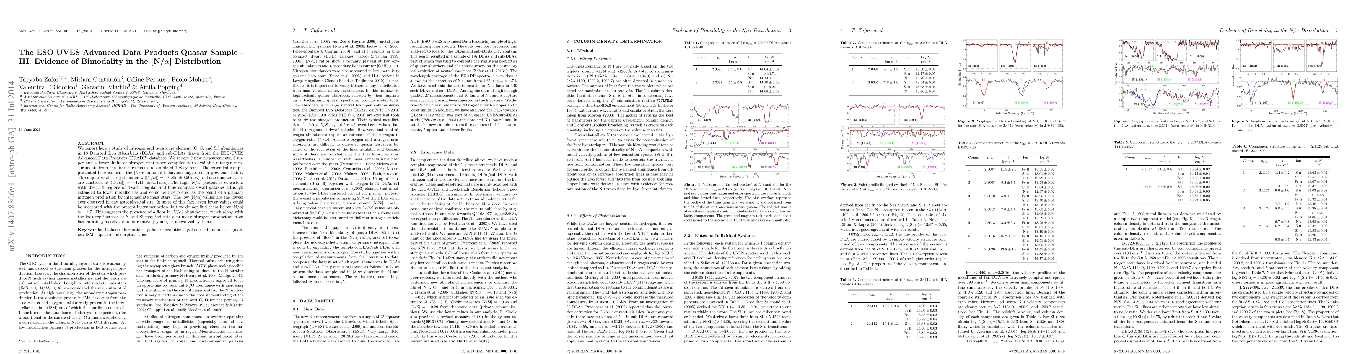 We report here a study of nitrogen and $\alpha$-capture element (O, S, and Si) abundances in 18 Damped Ly$\alpha$ Absorbers (DLAs) and sub-DLAs drawn from the ESO-UVES Advanced Data Products (EUADP) database. We report 9 new measurements, 5 upper and 4 lower limits of nitrogen that when compiled with available nitrogen measurements from the literature makes a sample of 108 systems. The extended sample presented here confirms the [N/$\alpha$] bimodal behaviour suggested in previous studies. Three-quarter of the systems show $\langle$[N/$\alpha$]$\rangle=-0.85$ ($\pm$0.20 dex) and one-quarter ratios are clustered at $\langle$[N/$\alpha$]$\rangle= -1.41$ ($\pm$0.14 dex). The high [N/$\alpha$] plateau is consistent with the HII regions of dwarf irregular and blue compact dwarf galaxies although extended to lower metallicities and could be interpreted as the result of a primary nitrogen production by intermediate mass stars. The low [N/$\alpha$] values are the lowest ever observed in any astrophysical site. In spite of this fact, even lower values could be measured with the present instrumentation, but we do not find them below [N/$\alpha$] $\approx$ $-1.7$. This suggests the presence of a floor in [N/$\alpha$] abundances, which along with the lockstep increase of N and Si may indicate a primary nitrogen production from fast rotating, massive stars in relatively young or unevolved systems.