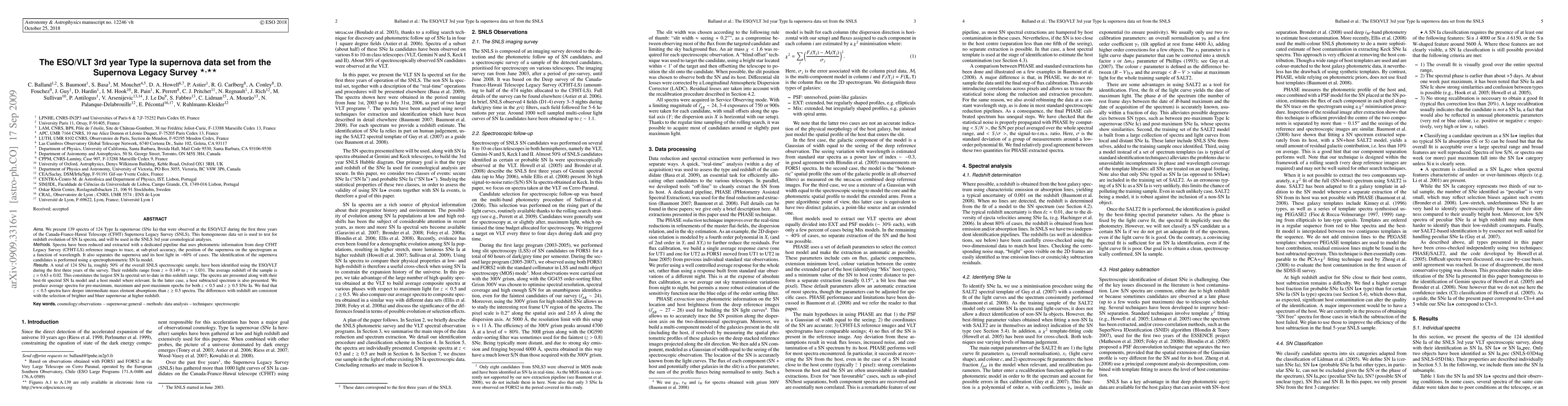 This paper presents 139 spectra of 124 Type Ia supernovae observed at ESO/VLT during the first three years of the SNLS, aiming to test for redshift evolution. The data set, the largest in this redshift range, provides insights into spectral differences between lower and higher redshift supernovae.