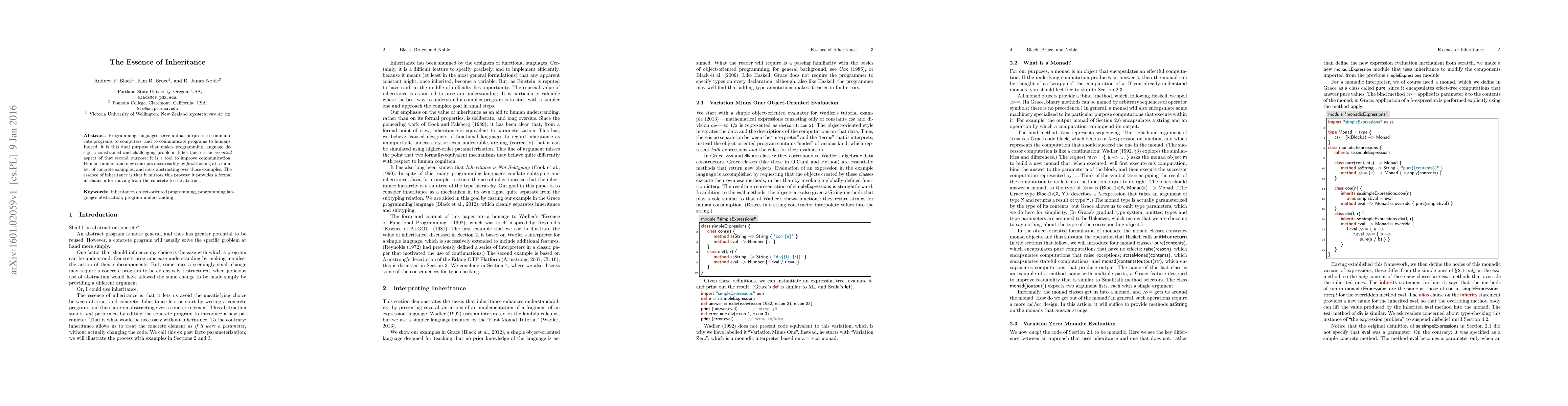 Programming languages serve a dual purpose: to communicate programs to computers, and to communicate programs to humans. Indeed, it is this dual purpose that makes programming language design a constrained and challenging problem. Inheritance is an essential aspect of that second purpose: it is a tool to improve communication. Humans understand new concepts most readily by first looking at a number of concrete examples, and later abstracting over those examples. The essence of inheritance is that it mirrors this process: it provides a formal mechanism for moving from the concrete to the abstract.