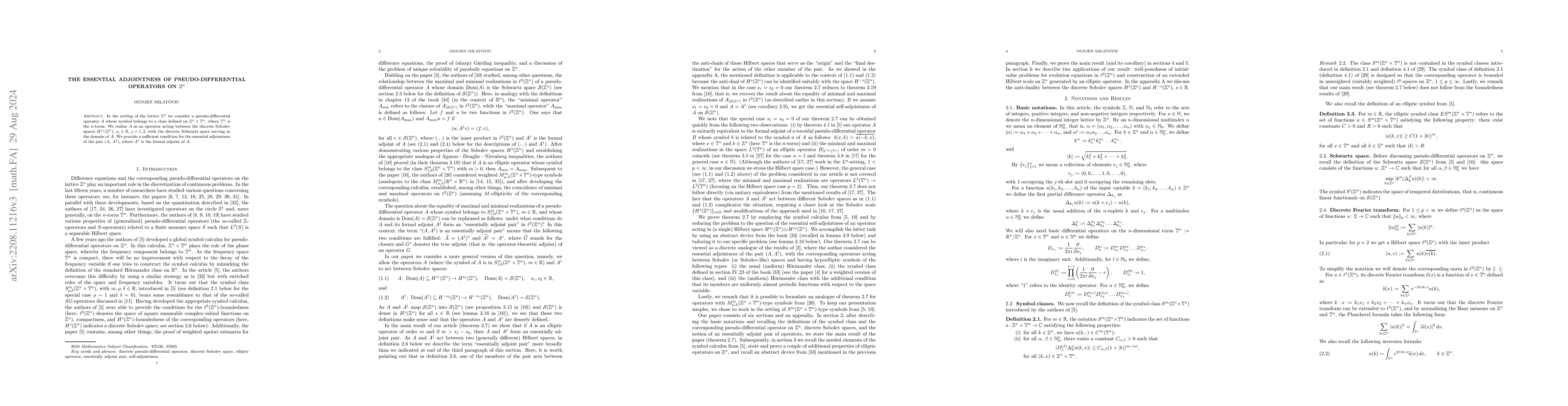 In the setting of the lattice $\mathbb{Z}^n$ we consider a pseudo-differential operator $A$ whose symbol belongs to a class defined on $\mathbb{Z}^n\times \mathbb{T}^n$, where $\mathbb{T}^n$ is the $n$-torus. We realize $A$ as an operator acting between the discrete Sobolev spaces $H^{s_j}(\mathbb{Z}^n)$, $s_j\in\mathbb{R}$, $j=1,2$, with the discrete Schwartz space serving as the domain of $A$. We provide a sufficient condition for the essential adjointness of the pair $(A,\,A^{\dagger})$, where $A^{\dagger}$ is the formal adjoint of $A$.
