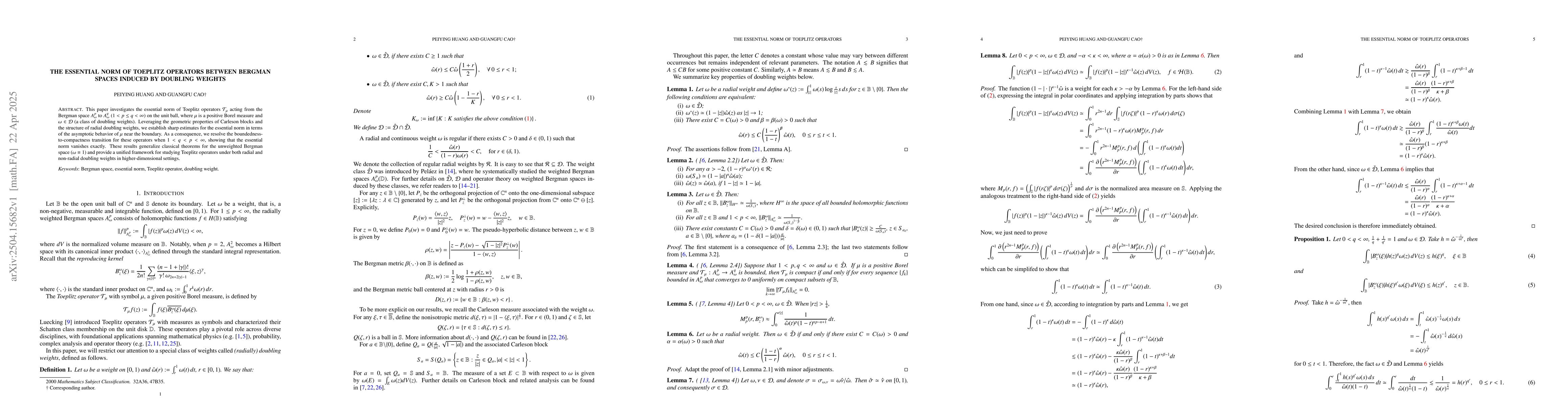 The paper presents sharp estimates for the essential norm of Toeplitz operators between Bergman spaces induced by doubling weights, resolving the boundedness-to-compactness transition for 1 < q < p < ∞.