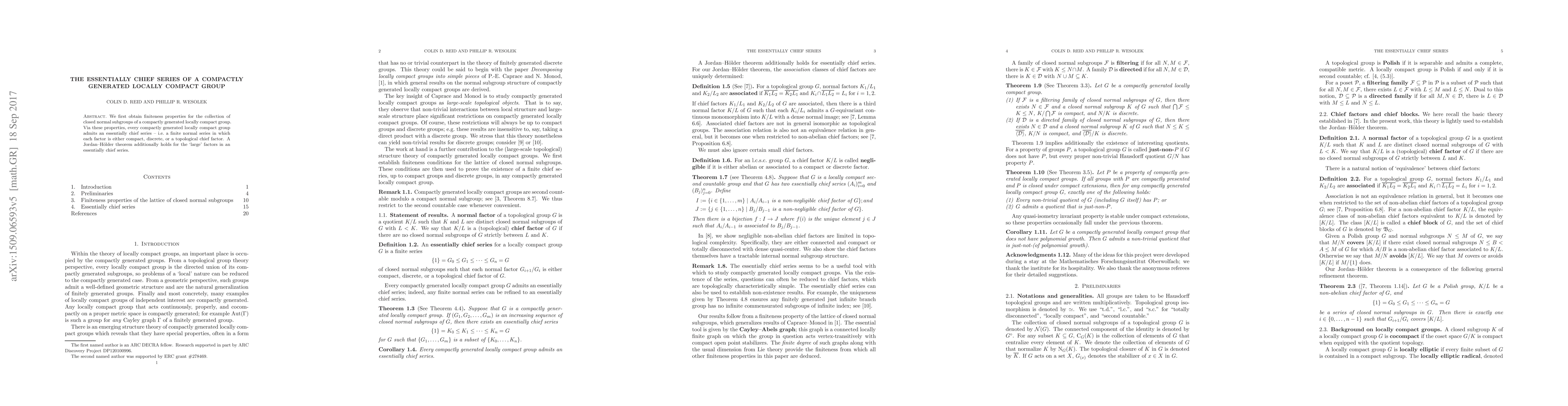 This paper establishes finiteness properties for closed normal subgroups in compactly generated locally compact groups, leading to the existence of an essentially chief series where each factor is either compact, discrete, or a topological chief factor, and proves a Jordan-Hölder theorem for the significant factors in such series.