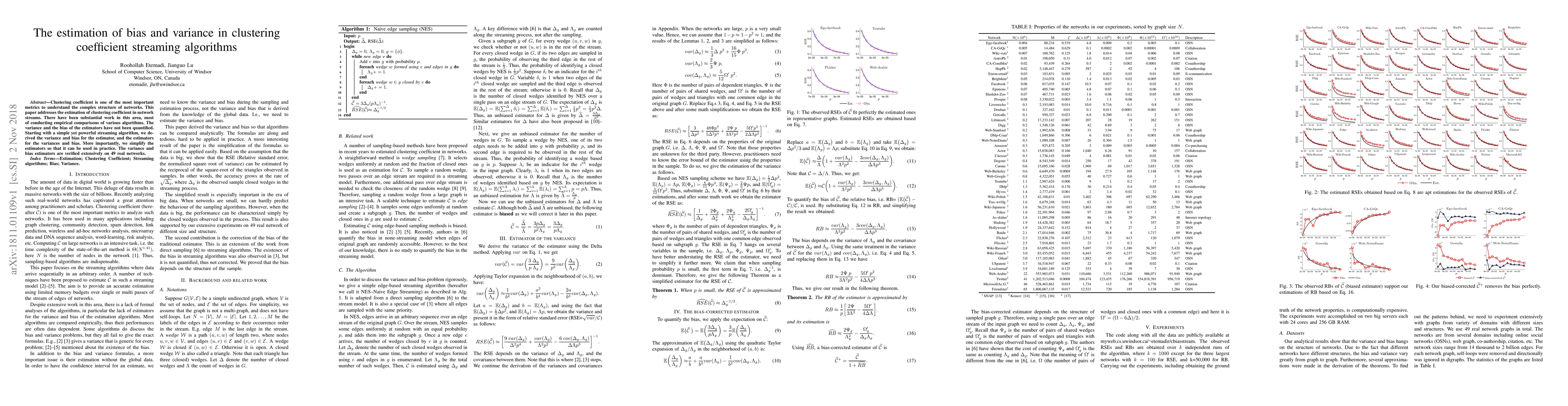 This paper derives and simplifies the variance and bias estimators for clustering coefficient in streaming algorithms, providing practical tools for network analysis. Extensive empirical validation on 49 real networks confirms the accuracy of the proposed estimators.