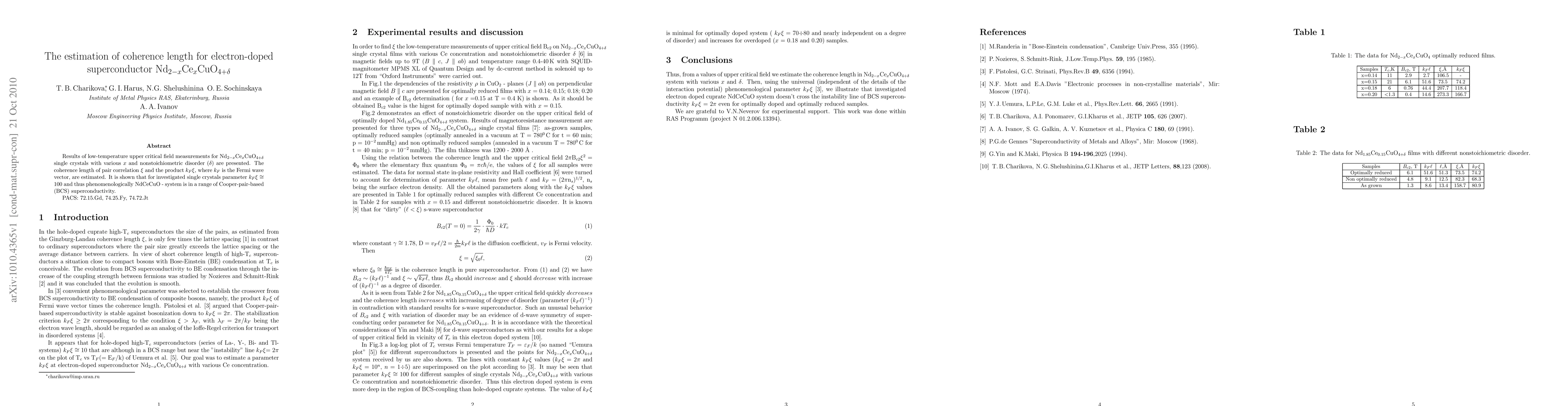 Results of low-temperature upper critical field measurements for Nd$_{2-x}$Ce$_x$CuO$_{4+\delta}$ single crystals with various $x$ and nonstoichiometric disorder ($\delta$) are presented. The coherence length of pair correlation $\xi$ and the product $k_F$$\xi$, where $k_F$ is the Fermi wave vector, are estimated. It is shown that for investigated single crystals parameter $k_F$$\xi$ $\cong$ 100 and thus phenomenologically NdCeCuO - system is in a range of Cooper-pair-based (BCS) superconductivity.