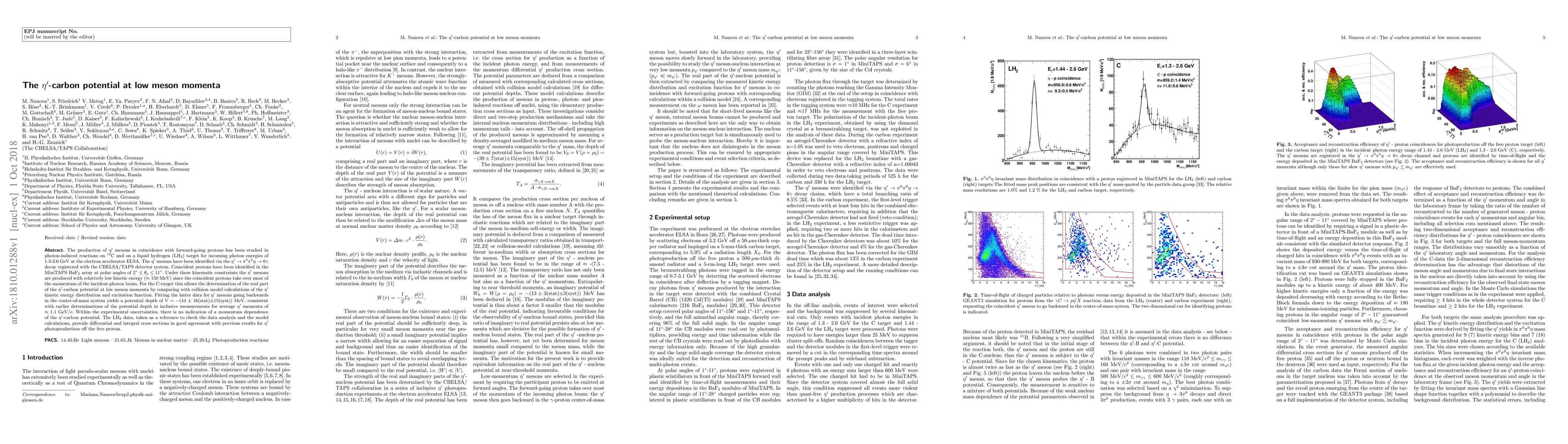The production of $\eta^\prime$ mesons in coincidence with forward-going protons has been studied in photon-induced reactions on $^{12}$C and on a liquid hydrogen (LH$_2$) target for incoming photon energies of 1.3-2.6 GeV at the electron accelerator ELSA. The $\eta^\prime$ mesons have been identified via the $\eta^\prime\rightarrow \pi^0 \pi^0\eta \rightarrow 6 \gamma$ decay registered with the CBELSA/TAPS detector system. Coincident protons have been identified in the MiniTAPS BaF$_2$ array at polar angles of $2^{\circ} \le \theta _{p} \le 11^{\circ}$. Under these kinematic constraints the $\eta^\prime$ mesons are produced with relatively low kinetic energy ($\approx$ 150 MeV) since the coincident protons take over most of the momentum of the incident-photon beam. For the C-target this allows the determination of the real part of the $\eta^\prime$-carbon potential at low meson momenta by comparing with collision model calculations of the $\eta^\prime$ kinetic energy distribution and excitation function. Fitting the latter data for $\eta^\prime$ mesons going backwards in the center-of-mass system yields a potential depth of V = $-$(44 $\pm$ 16(stat)$\pm$15(syst)) MeV, consistent with earlier determinations of the potential depth in inclusive measurements for average $\eta^\prime$ momenta of $\approx$ 1.1 GeV/$c$. Within the experimental uncertainties, there is no indication of a momentum dependence of the $\eta^\prime$-carbon potential. The LH$_2$ data, taken as a reference to check the data analysis and the model calculations, provide differential and integral cross sections in good agreement with previous results for $\eta^\prime$ photoproduction off the free proton.
