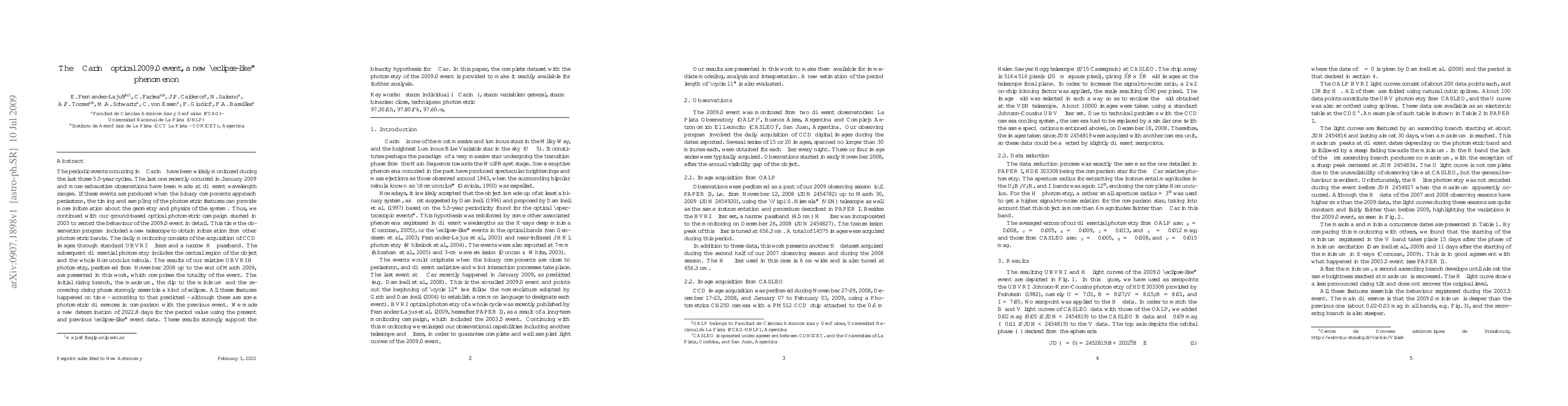 The Eta Carinae 2009.0 event exhibited features resembling an eclipse-like phenomenon, supporting the binarity hypothesis for the star, with a new period value of 2022.8 days determined through detailed photometric observations.