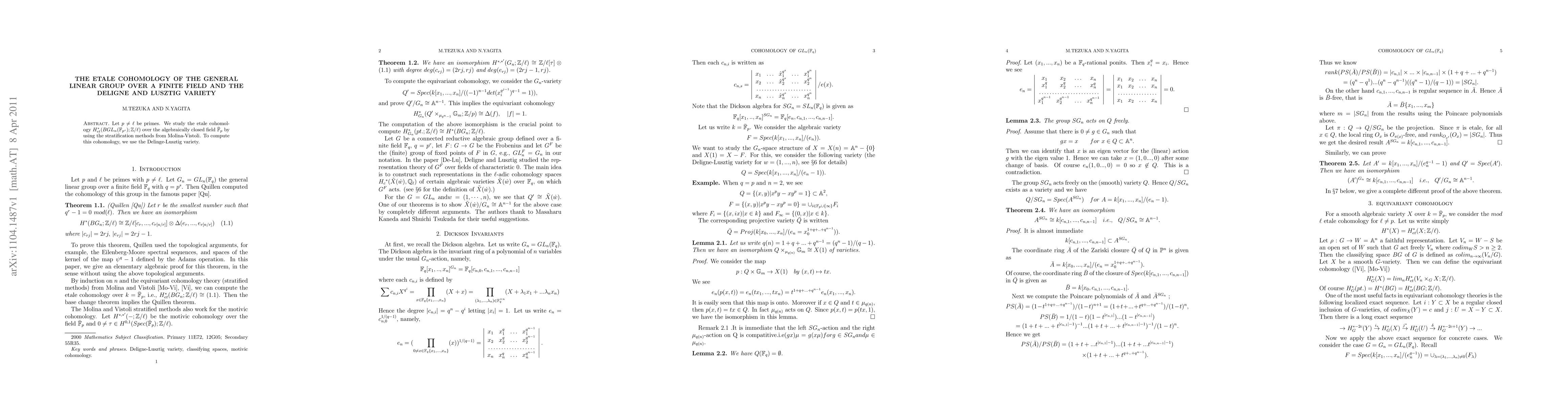 Summary: This paper investigates the étale cohomology of the general linear group over a finite field using stratification methods and the Deligne-Lusztig variety, focusing on the cohomology group $H^{*}_{et}(BGL_n(\bF_{p^s});\bZ/\ell)$ for distinct primes $p$ and $\ell$.