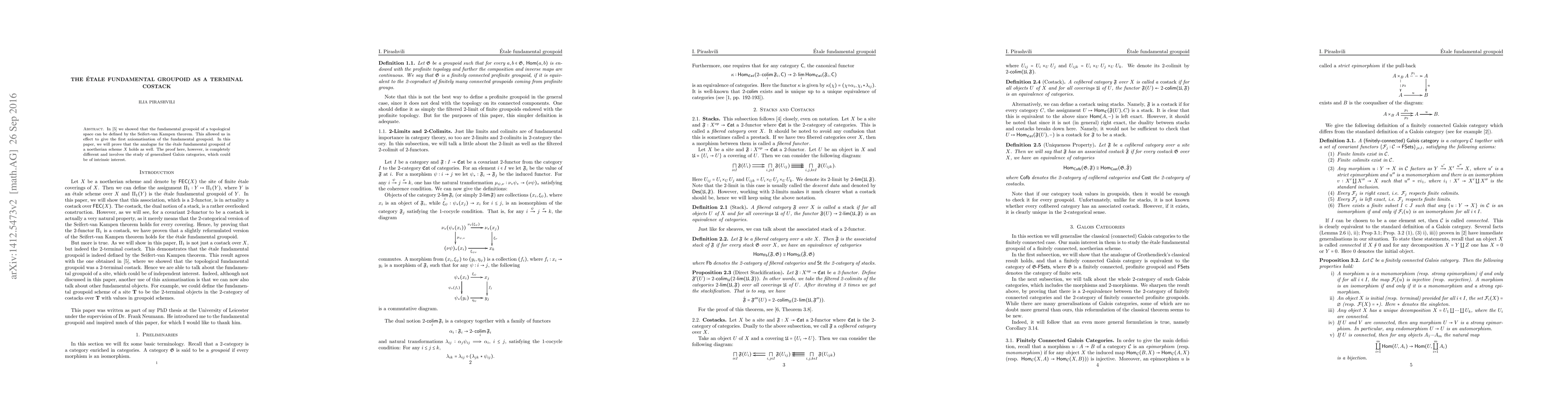 This paper proves that for a noetherian scheme X, the fundamental groupoid u03c8_1(X) acts as a terminal 2-stack over the site of u03c8^et coverings of X, establishing a key topological property in algebraic geometry.