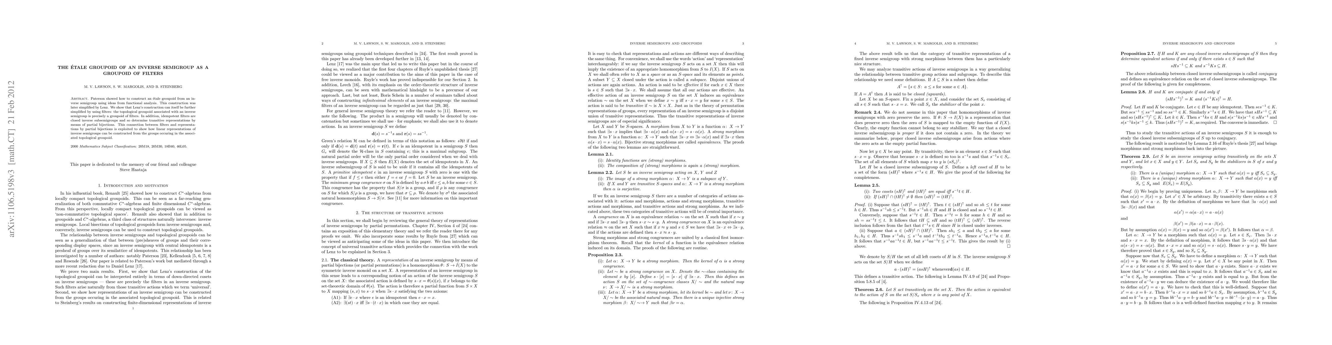 This paper simplifies Lenz's construction of an étale groupoid from an inverse semigroup by showing it is a groupoid of filters, where idempotent filters correspond to closed inverse subsemigroups and determine transitive representations via partial bijections. It also demonstrates how linear representations of inverse semigroups can be derived from the groups in the associated topological groupoid.