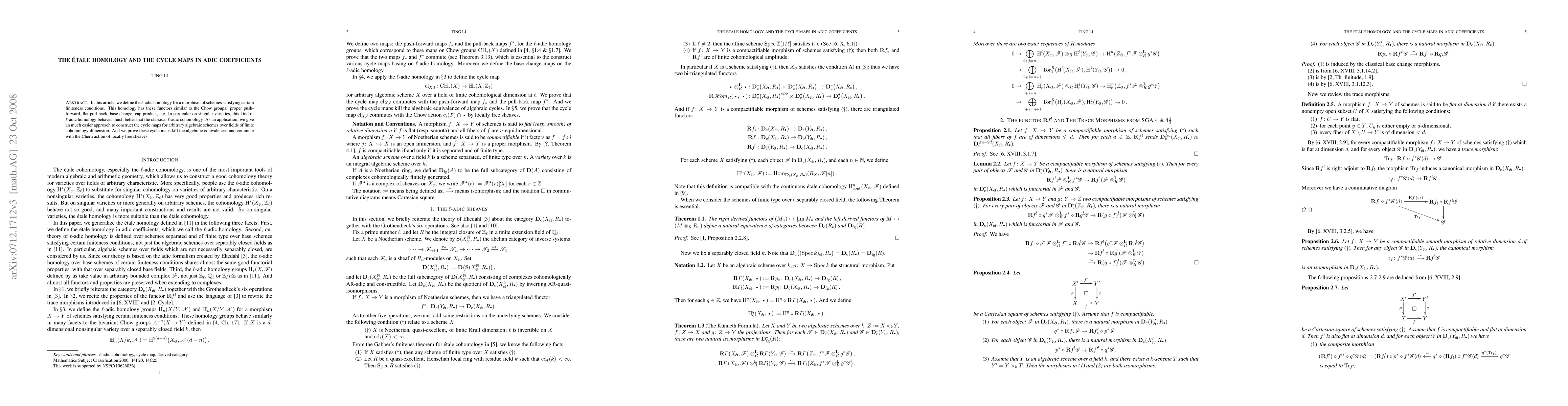 In this article, we define the l-adic homology for a morphism of schemes satisfying certain finiteness conditions. This homology has these functors similar to the Chow groups: proper push-forward, flat pull-back, base change, cap-product, etc. In particular on singular varieties, this kind of l-adic homology behaves much better that the classical l-adic cohomology. As an application, we give an much easier approach to construct the cycle maps for arbitrary algebraic schemes over fields of finite cohomology dimension. And we prove these cycle maps kill the algebraic equivalences and commute with the Chern action of locally free sheaves.