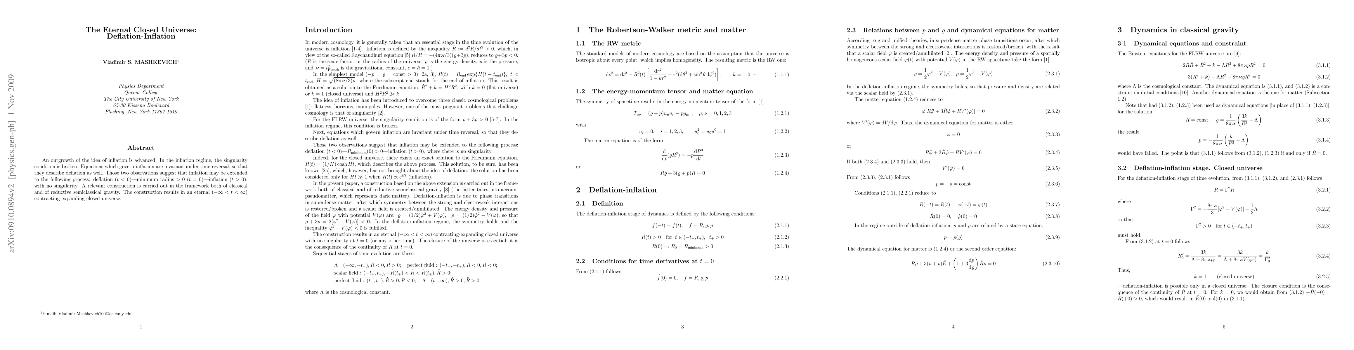 Title: The Eternal Closed Universe: Deflation-Inflation Summary: This paper proposes a model extending inflation to a deflation-inflation cycle that avoids singularities, resulting in an eternal, contracting-expanding closed universe within classical and semiclassical gravity frameworks.