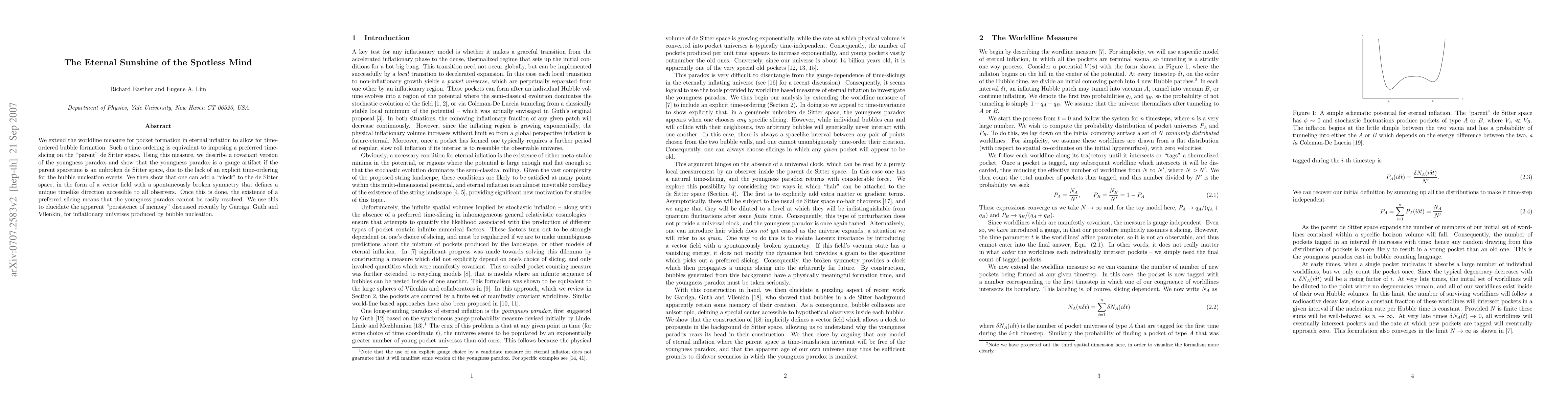 We extend the worldline measure for pocket formation in eternal inflation to allow for time-ordered bubble formation. Such a time-ordering is equivalent to imposing a preferred time-slicing on the "parent" de Sitter space. Using this measure, we describe a covariant version of the youngness paradox and show that the youngness paradox is a gauge artifact if the parent spacetime is an unbroken de Sitter space, due to the lack of an explicit time-ordering for the bubble nucleation events. We then show that one can add a "clock" to the de Sitter space, in the form of a vector field with a spontaneously broken symmetry that defines a unique timelike direction accessible to all observers. Once this is done, the existence of a preferred slicing means that the youngness paradox cannot be easily resolved. We use this to elucidate the apparent "persistence of memory" discussed recently by Garriga, Guth and Vilenkin, for inflationary universes produced by bubble nucleation.