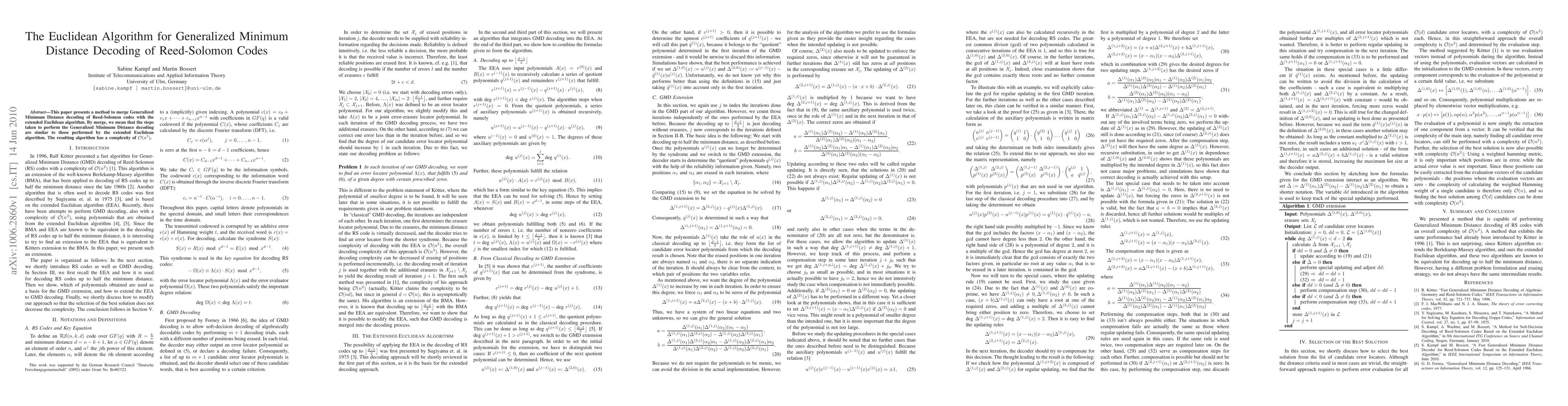 This paper introduces a method merging Generalized Minimum Distance decoding of Reed-Solomon codes with the extended Euclidean algorithm, achieving a complexity of O(n^2). The approach aligns decoding steps with those of the Euclidean algorithm.