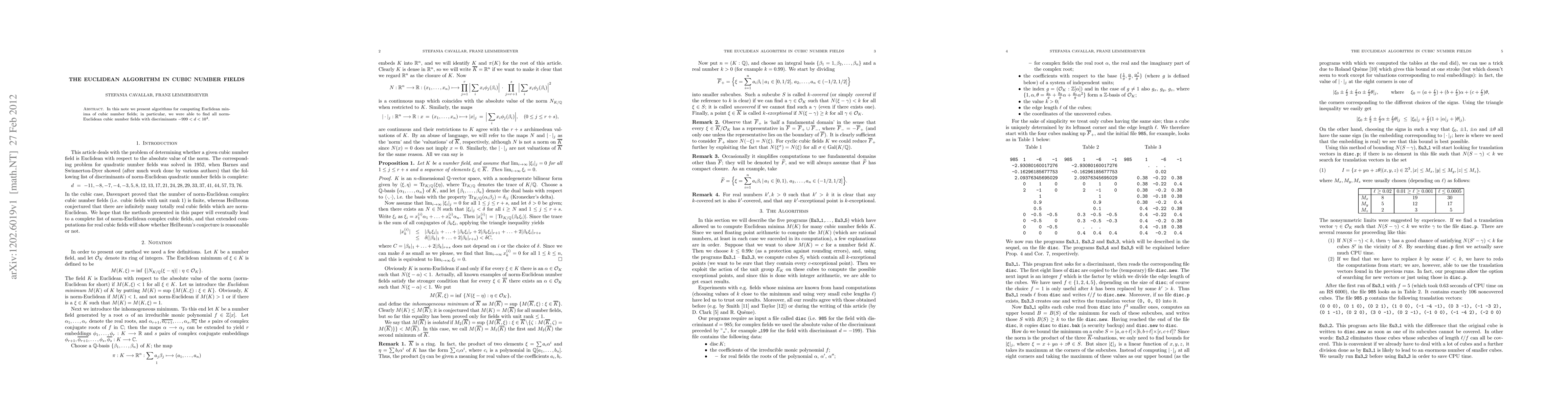 Summary: This paper introduces algorithms to determine the Euclidean minima in cubic number fields and identifies all norm-Euclidean cubic number fields with discriminants ranging from -999 to 10000.
