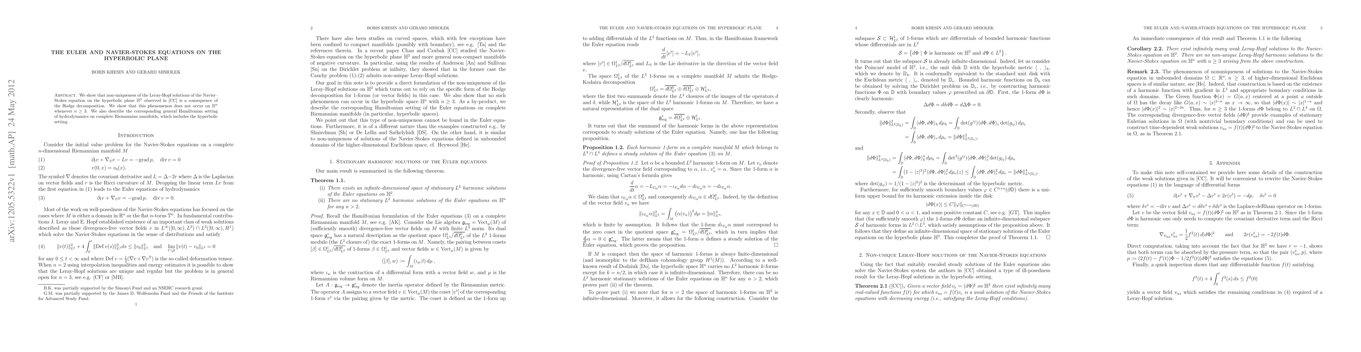 This research reveals that non-uniqueness in Navier-Stokes solutions on the hyperbolic plane, previously noted in a 2010 paper, stems from the Hodge decomposition. Interestingly, this issue doesn't arise in higher-dimensional hyperbolic spaces. The study also outlines a broader Hamiltonian framework for hydrodynamics on any complete Riemannian manifold, encompassing the hyperbolic case.