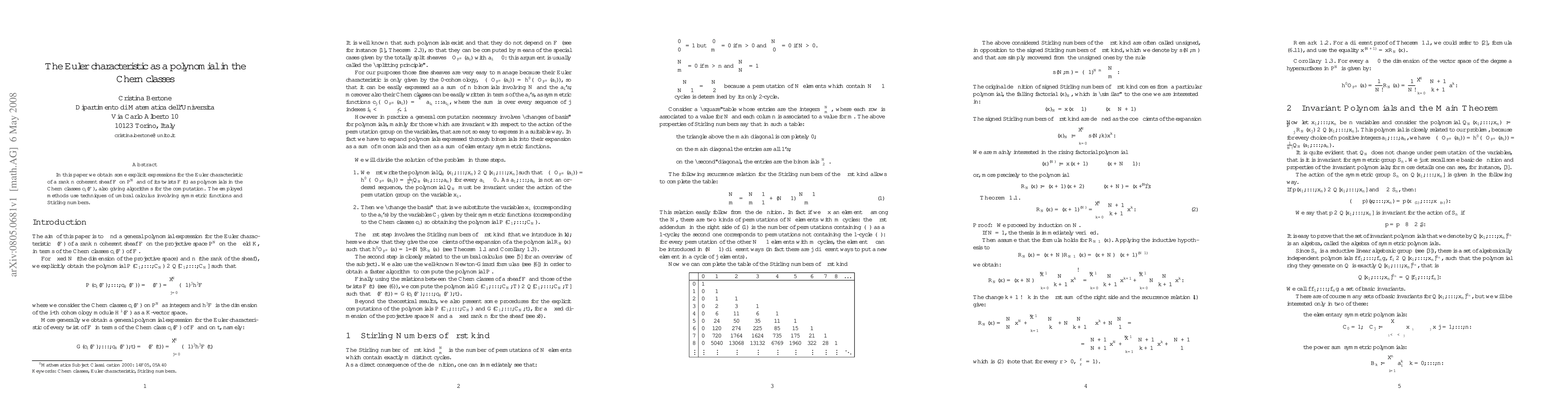 In this paper we obtain some explicit expressions for the Euler characteristic of a rank n coherent sheaf F on P^N and of its twists F(t) as polynomials in the Chern classes c_i(F), also giving algorithms for the computation. The employed methods use techniques of umbral calculus involving symmetric functions and Stirling numbers.