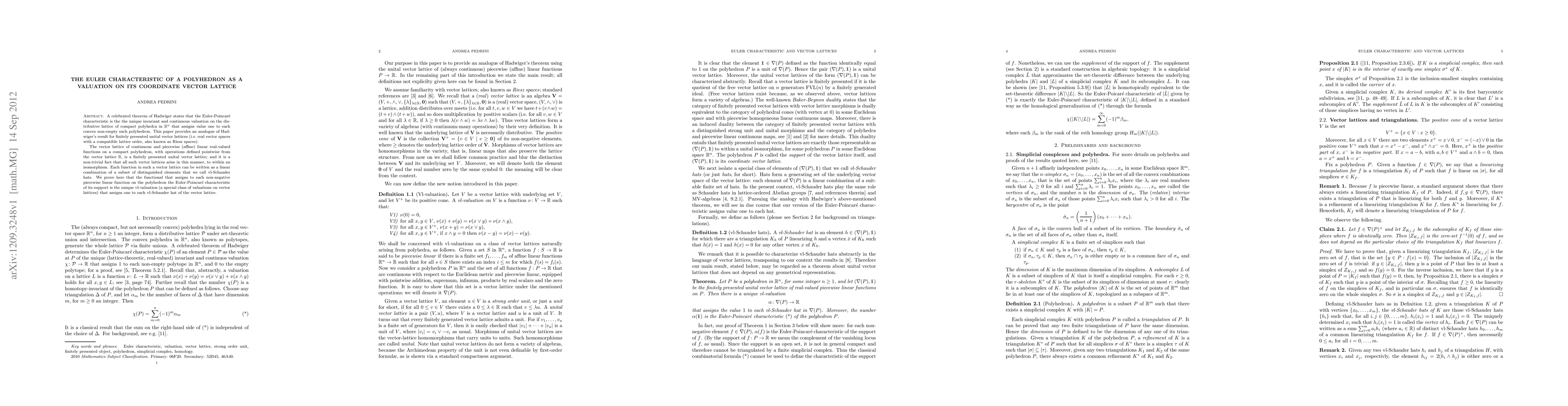 A research paper establishes a unique valuation on the coordinate vector lattice of compact polyhedra, analogous to Hadwiger's theorem, which assigns Euler-Poincaré characteristic values to convex non-empty polyhedra.