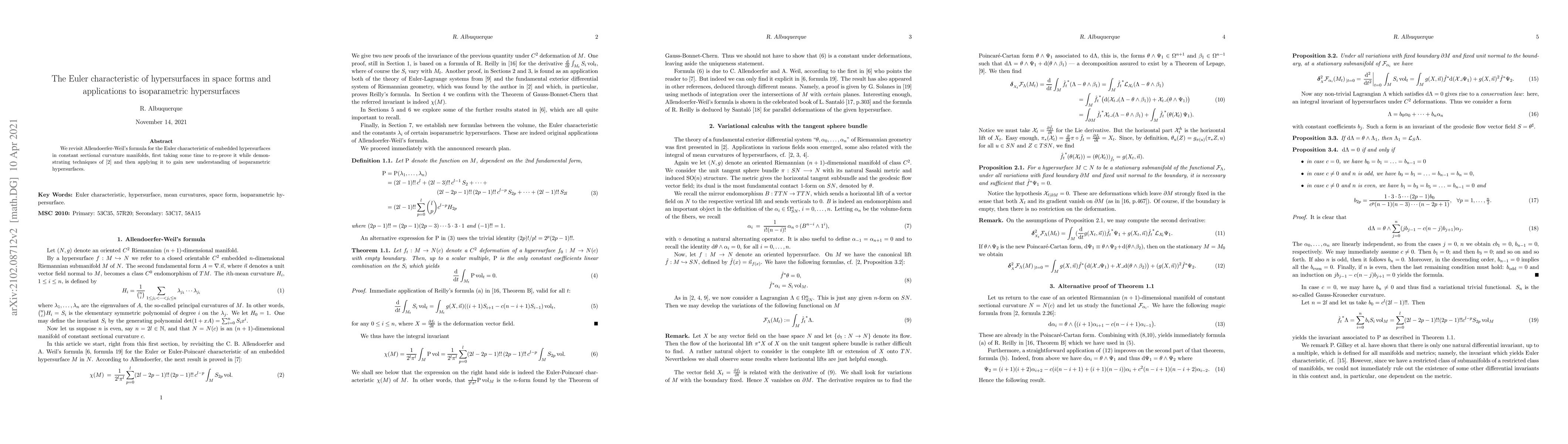 We revisit Allendoerfer-Weil's formula for the Euler characteristic of embedded hypersurfaces in constant sectional curvature manifolds, first taking some time to re-prove it while demonstrating techniques of [2] and then applying it to gain new understanding of isoparametric hypersurfaces.