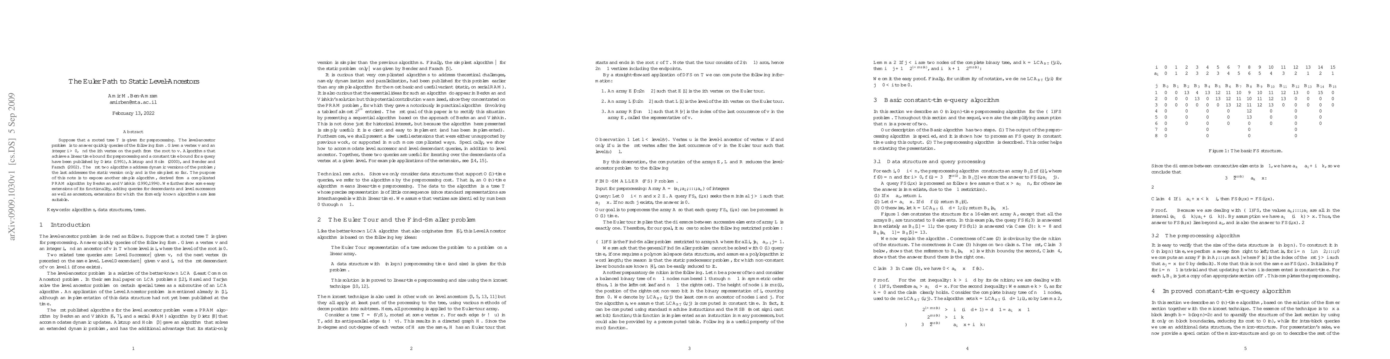 Suppose that a rooted tree T is given for preprocessing. The Level-Ancestor Problem is to answer quickly queries of the following form. Given a vertex v and an integer i > 0, find the i-th vertex on the path from the root to v. Algorithms that achieve a linear time bound for preprocessing and a constant time bound for a query have been published by Dietz (1991), Alstrup and Holm (2000), and Bender and Farach (2002). The first two algorithms address dynamic versions of the problem; the last addresses the static version only and is the simplest so far. The purpose of this note is to expose another simple algorithm, derived from a complicated PRAM algorithm by Berkman and Vishkin (1990,1994). We further show some easy extensions of its functionality, adding queries for descendants and level successors as well as ancestors, extensions for which the formerly known algorithms are less suitable.