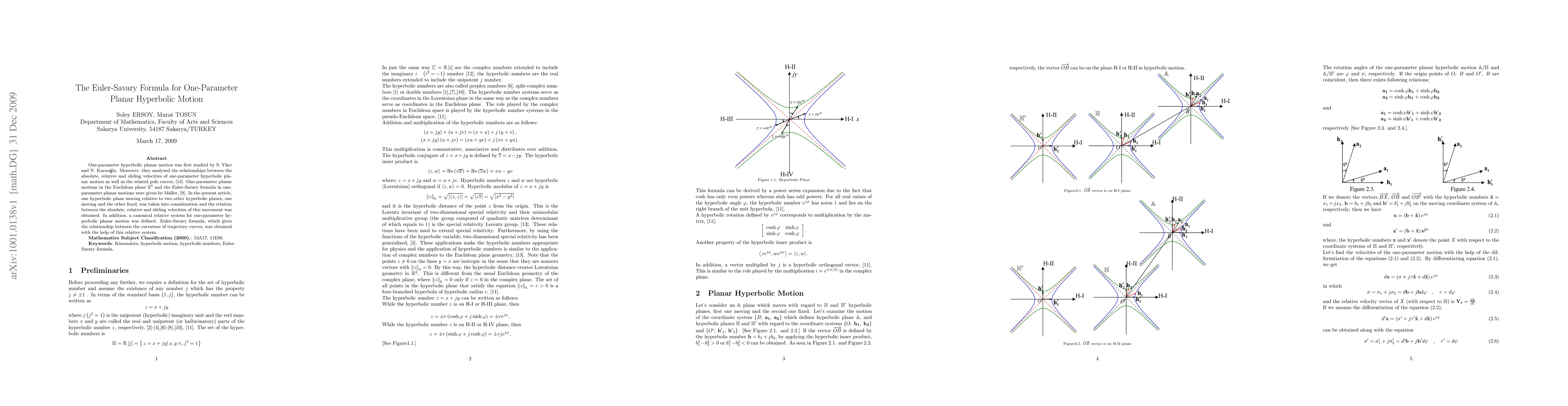 One-parameter hyperbolic planar motion was first studied by S. Y$\ddot{\texttt{u}}$ce and N. Kuruo$\tilde{\texttt{g}}$lu. Moreover, they analyzed the relationships between the absolute, relative and sliding velocities of one-parameter hyperbolic planar motion as well as the related pole curves, \cite{Yuc}. One-parameter planar motions in the Euclidean plane $\mathbb{E}^2$ and the Euler-Savary formula in one-parameter planar motions were given by M$\ddot{\texttt{u}}$ller, \cite{Mul}. In the present article, one hyperbolic plane moving relative to two other hyperbolic planes, one moving and the other fixed, was taken into consideration and the relation between the absolute, relative and sliding velocities of this movement was obtained. In addition, a canonical relative system for one-parameter hyperbolic planar motion was defined. Euler-Savary formula, which gives the relationship between the curvature of trajectory curves, was obtained with the help of this relative system.