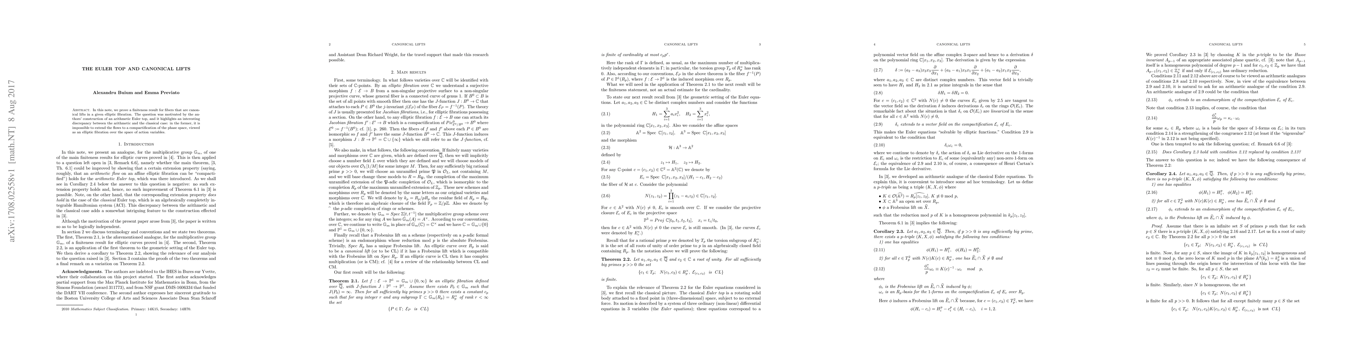 In this note, we prove a finiteness result for fibers that are canonical lifts in a given elliptic fibration. The question was motivated by the authors' construction of an arithmetic Euler top, and it highlights an interesting discrepancy between the arithmetic and the classical case: in the former, it is impossible to extend the flows to a compactification of the phase space, viewed as an elliptic fibration over the space of action variables.